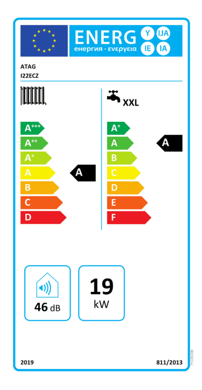 Gecombineerd met de slimme WiFi thermostaat ATAG One wordt energielabel A+ behaald op centrale verwarming. Deze thermostaat is op afstand bedienbaar via de ATAG One app.